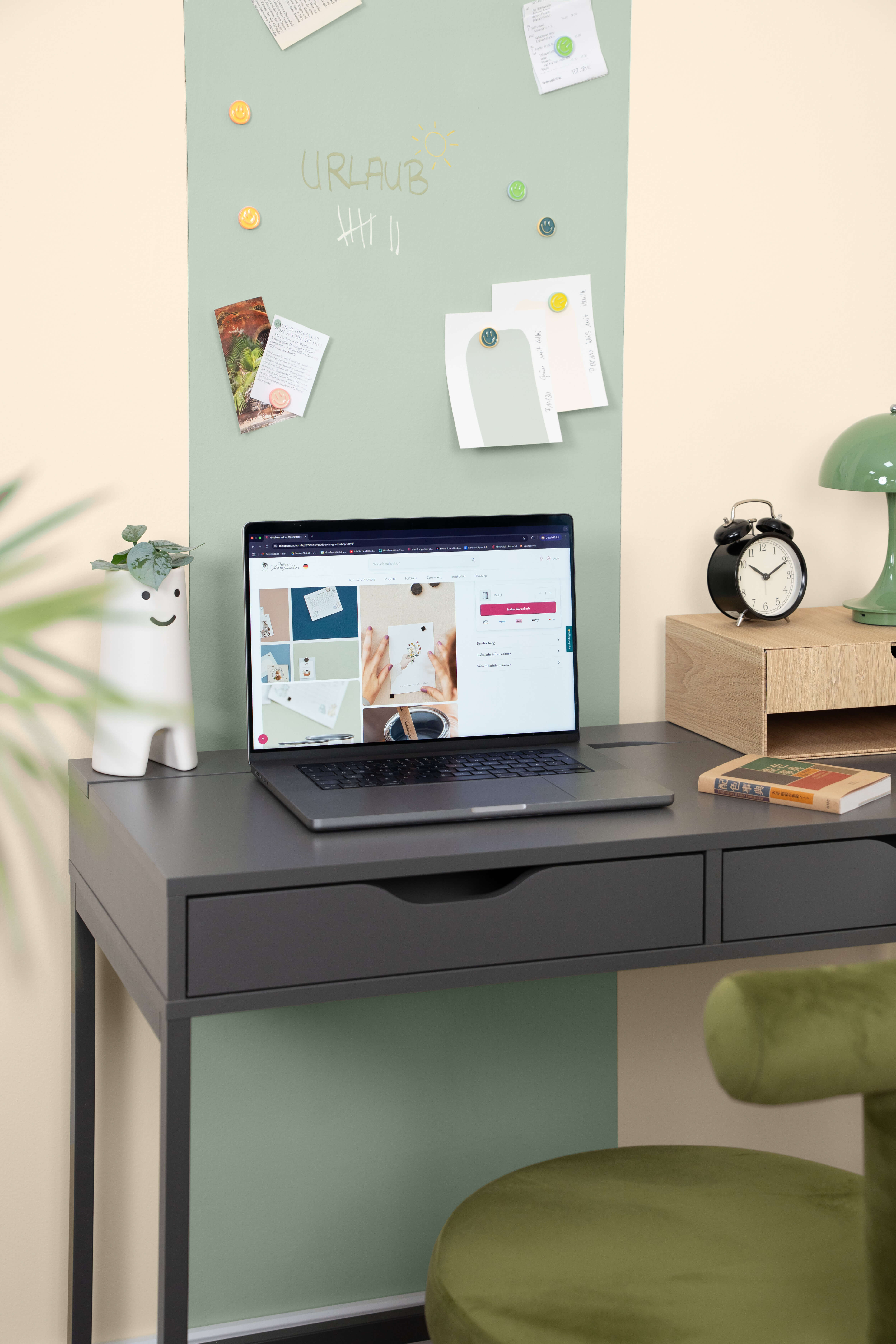 Crée un mur magnétique DIY pour organiser ton bureau à domicile avec style. Notre peinture magnétique s’applique facilement et peut être recouverte avec la teinte de ton choix – simple, pratique et parfaitement adaptée à ton univers.