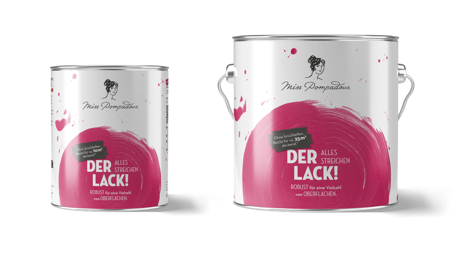 | Laque Tout-Peindre !: | La Laque Tout-Peindre ! de MissPompadour est une Peinture laque à base d'eau, délicatement satinée, pour l'intérieur et l'extérieur, avec un excellent pouvoir couvrant. Elle convient pour travailler les carreaux, le métal, la pierre, les plastiques et bien sûr le bois à l'intérieur et à l'extérieur. Avec la Laque Tout-Peindre !, tu obtiendras une surface lisse, facile à entretenir et agréable au toucher. Préparation et utilisation : bien mélanger Peinture laque et appliquer à des températures à partir de 7 °C. Traiter le fer brut et le métal rouillé (poncer les points de rouille) avec un apprêt antirouille, puis appliquer une couche de base avec Sous-couche. Enlève les vieilles peintures qui s'écaillent. Le support doit être exempt de poussière et de graisse. Si la surface est lisse, exsudative ou tachée, appliquer au préalable le bloc d'adhérence et de stain MissPompadour Sous-couche. Utilise le Pinceau fin MissPompadour ou une Peinture laquerolle. La pulvérisation est possible après dilution avec 15% d'eau. Portée : 1L La Laque Tout-Peindre ! suffit pour environ 10 m2 en appliquant une double couche. Le pouvoir couvrant et la portée dépendent de la nature du support Temps de séchage : Sec à la poussière après 1 heure - recouvrable après 4-5 heures - durci après environ 14 jours Durée de conservation : Dans un emballage non ouvert, au moins 24 mois si le produit est stocké au frais et à l'abri du gel. Conserver bien fermé et propre pour ne pas altérer la durée de conservation Diluer : Notre Peinture laque est prête à l'emploi, si nécessaire, diluer éventuellement avec 5% d'eau lors de l'application au pinceau et au rouleau. En cas d'utilisation d'un pulvérisateur de peinture, diluer avec 15% d'eau maximum. |