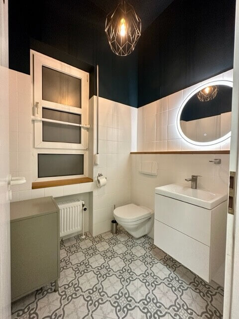 Le noir est également une couleur chic pour la salle de bain, surtout que les robinetteries, les douches et autres accessoires sont désormais aussi disponibles en noir. Pour obtenir un rendu harmonieux, il est souvent recommandé de diviser l'espace horizontalement, en utilisant de la peinture noire pour la partie inférieure et une teinte claire pour la partie supérieure. Les carreaux peuvent être parfaitement peints avec une peinture noire adaptée.