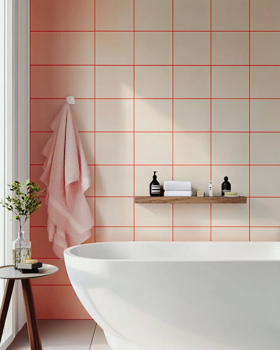 Pour ceux qui préfèrent une subtilité affirmée mais tout aussi marquante, les joints colorés sont une excellente option. Au lieu de rester discrets, ils deviennent un véritable élément de design : ton sur ton pour un rendu harmonieux, ou en contraste pour mettre en valeur les structures et motifs. Des carreaux blancs avec des joints rouge vif ? Pourquoi pas ! Tout l’univers des couleurs s’offre à toi. Cette approche ouvre de nouvelles possibilités pour mettre en scène les surfaces carrelées de manière unique.