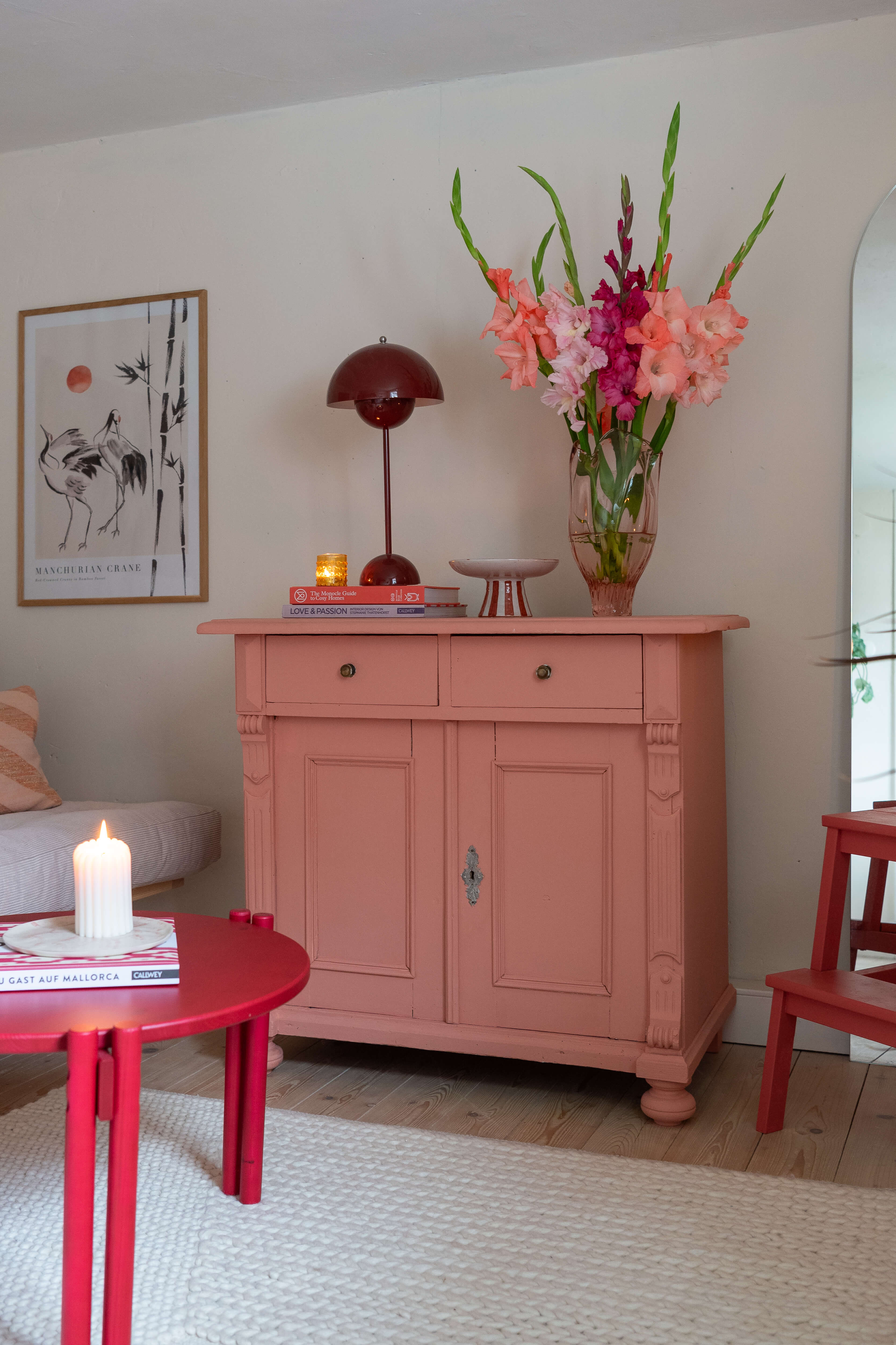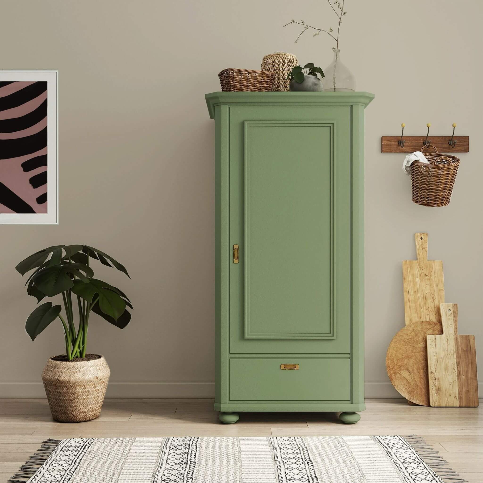 Du revival Art-Déco aux nuances rétro, les tendances d’habitat et de couleur de 2026 se veulent à la fois émotionnelles, ludiques et pleines de caractère. L’air du temps rencontre l’authenticité : le mélange de meubles anciens et modernes peut créer une esthétique unique. As-tu un meuble de famille ou de vieux tableaux pour le mur ? Crée ton style d’aménagement personnel en associant des lignes et des formes modernes et épurées. Peut-être souhaites-tu aussi redonner vie à un vieux meuble en le peignant dans une couleur nouvelle et surprenante ?