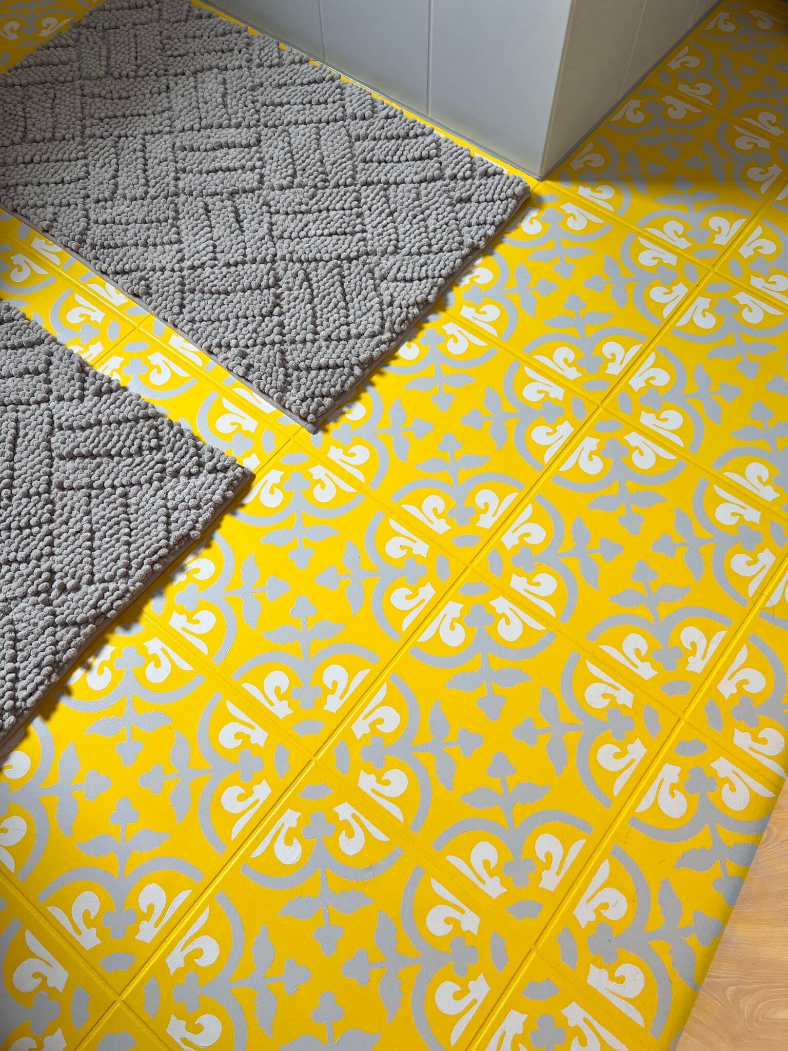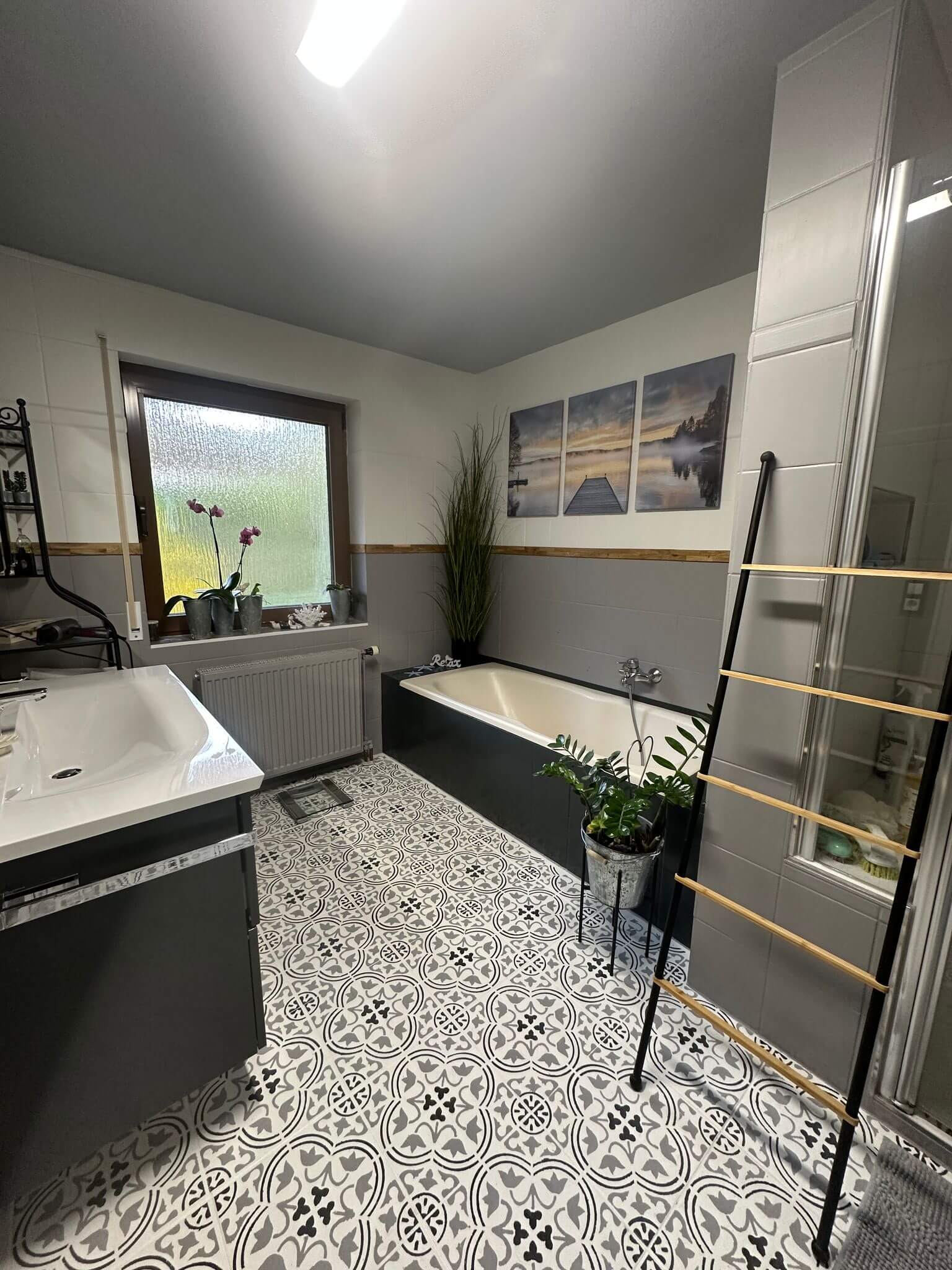 Les motifs géométriques sur les carreaux et les murs compteront également parmi les grandes tendances de 2026. Véritables points de mire, ils attirent l’attention et structurent l’espace. Qu’il s’agisse d’hexagones, de triangles ou de motifs rétro graphiques, les formes claires apportent profondeur et dynamisme aux surfaces. Cette tendance déco insuffle une touche moderne et transforme des espaces simples en mises en scène design captivantes. Découvre différentes façons de peindre des murs ou des carreaux avec des motifs dans notre article de blog : Peindre des murs avec des motifs.